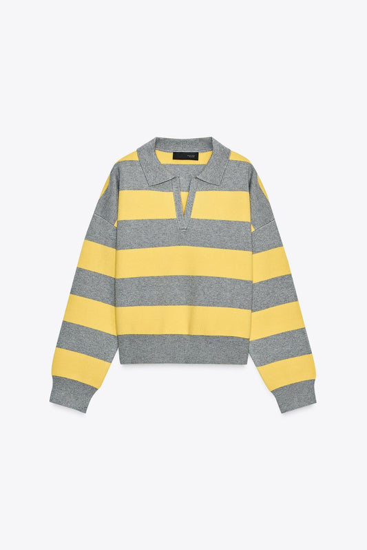 Lumeva - Suéter a rayas amarillo y gris