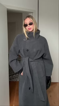 Abrigo de cuello alto suave con cinturón