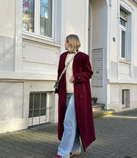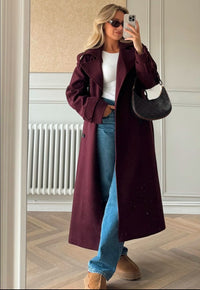 Este elegante trench largo con cuello clásico y cinturón para anudar a la cintura combina comodidad y sofisticación. Cuenta con botones frontales, bolsillos prácticos y un corte regular, ideal para un look chic y relajado. Perfecto para los días frescos.
